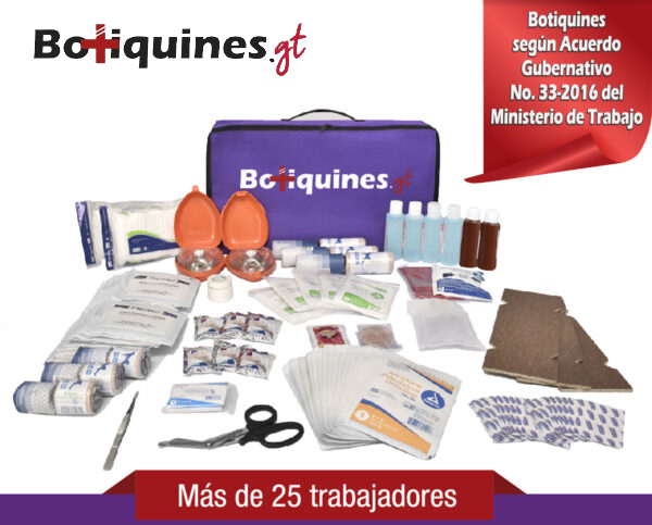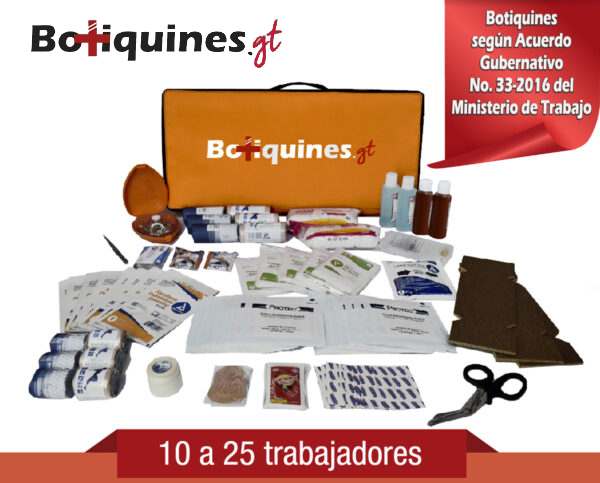 Botiquines diseñados con el contenido necesario para la atención de primeros auxilios o con equipo especial que le faciliten realizar su actividad profesional.